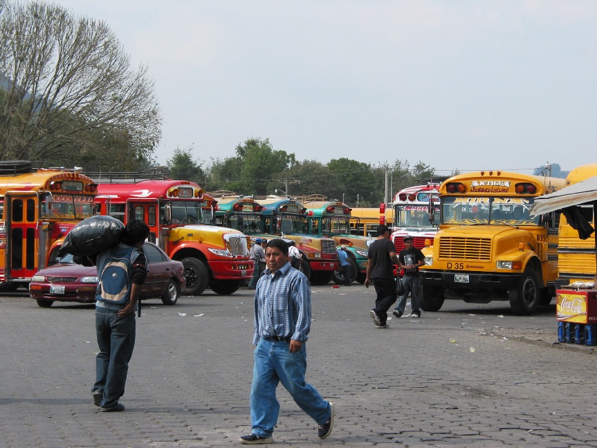 Fra busstationen i Antigua kan man komme ud i alle hjørner af Guatemal med de velkendte chicken buses.