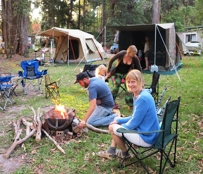 Lige efter jul var vi på camping i 4 dage. Efter ca 3 1/2 times kørsel mod syd fra Sydney nåede vi ud til en lejr ved Bendalong. Mit første indtryk af stedet var lidt skuffende. Et lille, slidt træskilt med navnet "Rustic" pegede ned ad en grusvej til lejren. Og navnet var særdeles rammende! Lejren lå dybt inde i en skov med høje træer af især Eucalyptus, og bebyggelsen lignede en blanding af Kristiania og en gammel hippieby i den 3. verden. Stedet vandt dog ved et nærmere bekendtskab.