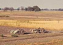 Sitting in one of the very long trains in the late afternoon, listening to the frequent whistle of the gigantic steam locomotive, we are staring out of the lattice windows, admiring the flat and fertile landscape of northern India.