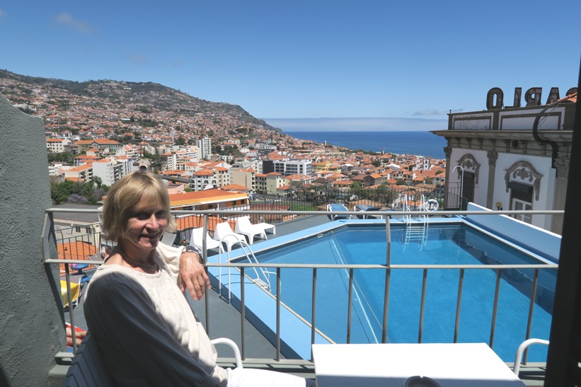 Vi boede på et af mine favorithoteller, vi selv havde booket hjemmefra. Det var det trestjernede hotel Monte Carlo, som ligger i centrum af Funchal cirka 100 meter over byen. Det er ikke egnet for gangbesværede, for hver gang man skal hjem fra byen, skal de 100 højdemeter overvindes til fods. Belønningen er en formidabel udsigt over Funchal, bjergene og havet fra vores private altan eller fra hotellets dejlige fælles terrasse.
