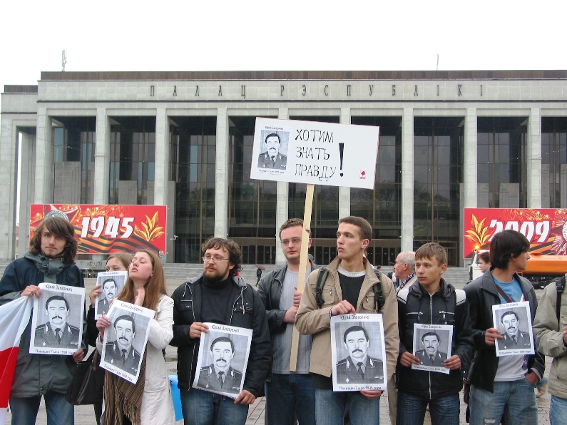 Demonstration mod Lukashenko-styret på Oktober-pladsen i byens centrum.