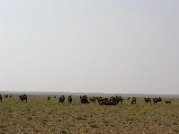 Elise og jeg rejste med en gruppe på 8 personer fra De Berejstes Klub, som fik arrangeret denne fantastiske tur fra Moskva til Kina med den transsibiriske og den transmongolske jernbane. Vi rejste rundt i Mongoliet i cirka. 1 uge. Afstandene var store, og veje var nærmest ikke-eksisterende, hvilket vil sige, at vores 4-hjulstrækkere kørte ad tilfældige hjulspor ud over stepperne og ørkenen. Det ville have været meget svært, hvis vi selv skulle have fundet vej, for der var overhovedet ingen vejskilte, og der kunne gå timer før man mødte en modkørende bil. Det kunne føles langt at køre op til 300 km på en dag i dette terræn, men langt ude i synsfeltet havde man altid udsigt til nomadernes telte og deres dyr, og på den høje himmel over græssletterne og Gobi-ørkenen svævede et imponerende antal ørne og andre meget store rovfugle, som vi også ofte mødte stående ved side af hjulsporet.