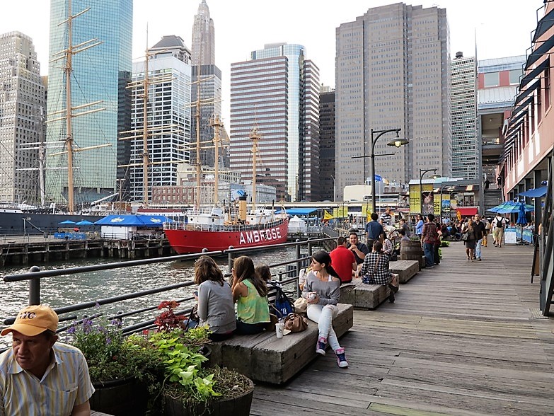 Night life in the harbour area of lower East Manhattan, near Brooklyn Bridge.