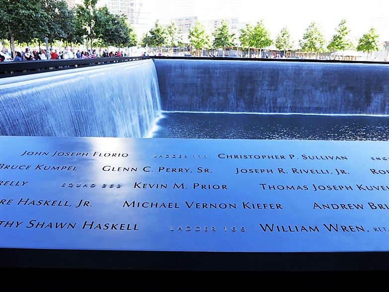 From Ground Zero in Lower Manhattan. Today you find two gigantic memorials on the place of the former twin towers, framed by marble plates with all the names of those who died on 9-11.