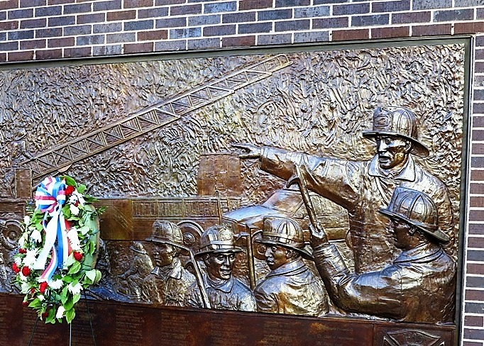 Monument close to ground zero showing the firefighters at work on 9-11.