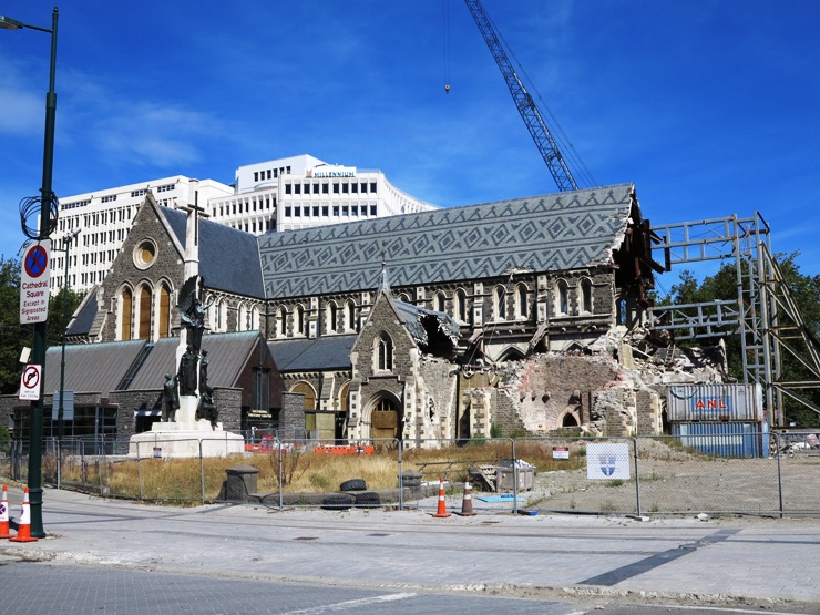 Jordskælvet i Christchurch februar 2011 ødelagde en stor del af de gamle bygninger i byen. Store dele af byen er stadig afspærret.