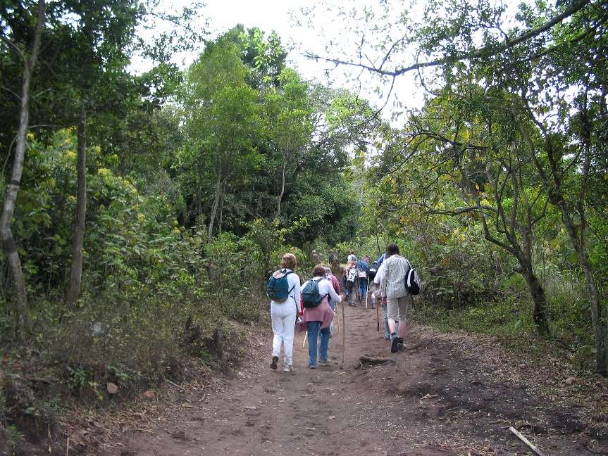 Opstigningen til de flydende lavastrømme ved Pacaya-vulkanen tager et par timer, og stien går gennem tæt skov.