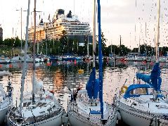 3: From the harbour near The Langelinie Quai in central Copenhagen. During the summer months, gigantic cruise ships visit the town, and thousands of passengers make the capital of Denmark on a quick one-night-sightseeing-trip.