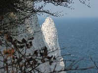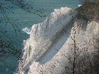 Finally, some short, lexical facts: The cliffs have a length of about 6 kilometers, and the maximal height at the sea is 128 meters. The white chalk was deposited in a tropical sea about 70 million years ago. It consists of almost pure chalk, derived from one-celled algees living in the upper layers of the sea. You can find fossils of several organisms in the chalk. About 15.000 years ago, these deposits were changed into the impressive formations by the huge press from the ice.