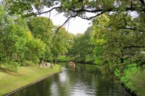 Så var sejlturen rundt om det centrale Riga mere hyggelig. Hver halve time afgår en lille turistbåd fra den smalle kanal, som omkranser den gamle bydel og går gennem parker og grønne områder. Turen varer 1 time, og cirka halvdelen af tiden sejler man på den brede Daugava-flod, som løber ud i Østersøen. Hyggeligt og interessant at se byen fra vandsiden.
