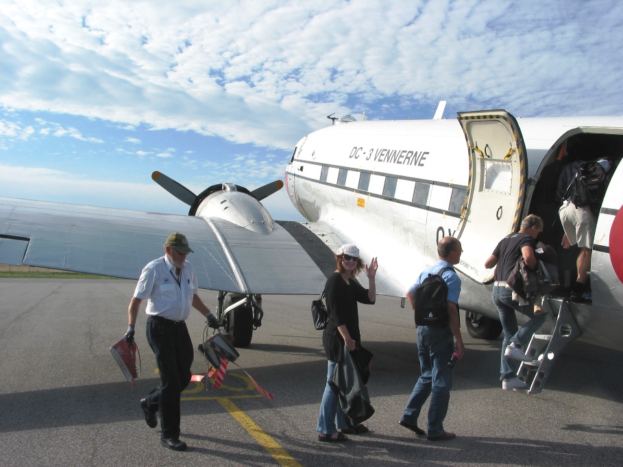 Den 1. september 2009 fik jeg realiseret en af gaverne fra min seneste runde fødselsdag: En tur med det legendariske fly DC-3, som har været et af de mest kendte og benyttede flytyper i verden. Min kæreste Elise var med på turen, og hun var forbavsende afslappet under hele forløbet.