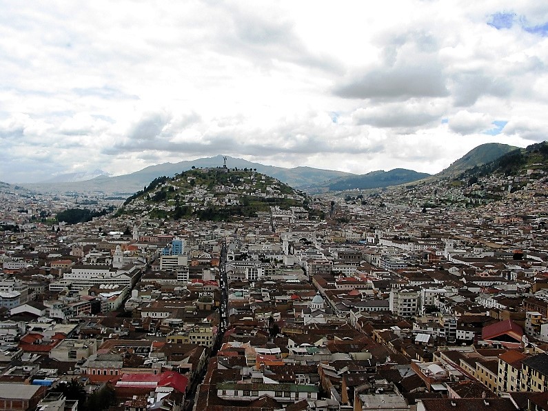 Udsigt over Ecuadors hovedstad Quito fra et af tårnene i katedralen