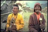 Above, left: Tibetan refugees with prayer mills near Pokhara.