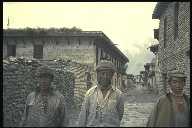 Kathmandu is situated at an altitude of about 1.350 meters. The population in the Kathmandu valley consists of many different tribes, but the newars is the dominating group. Almost all the men are wearing the traditional topi on their heads. In the background, you see a typical newar house, with wooden balconies and roofs above.