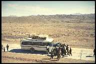 Above, middle: From the bus trip through Afghanistan. After several hour's drive in mist and cold, the weather suddenly changed after the crossing of a mountain pass, and from now on, the sun was shining warm and pleasant over the desert. We met camels and bedouins walking along the road everywhere. This photo was taken between Herat and Kandahar in the southern part of the country.