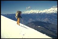 with subtropical climate. It's our sherpa Pemba in the foreground. From this area, you could overlook a major part of the Himalayan chain with hundwhites of peaks - some of them even in Tibet.