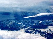 4. Få minutter efter starten fra Kulusuk stryger vi ind over Sermilikfjorden med de mange isbjerge, og vi kan nu se ned over det område, hvor vi har vandret i den sidste måneds tid. Flyet stiger stadig og vil om kort tid være inde over indlandsisen.