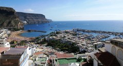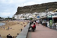"Det lille, lækre resort dukker op som en hvid luftspejling dybt nede under en stejl og dramatisk kystvej ca. 45 min. med bussen fra Playa del Inglés. Ud over solens stærke stråler rammes man straks af den behagelige slowmotion-følelse, der præger ferieparadiset, som netop derfor appellerer til børnefamilier og andre, der er til natur og stilhed frem for party og dunkende natterytmer. Langs den 300 meter lange halvmåneformede og pletfri strand kan ungerne boltre sig i lavt og spejlglat lyseblåt vand, der er helt beskyttet af den knibtangsformede mole.