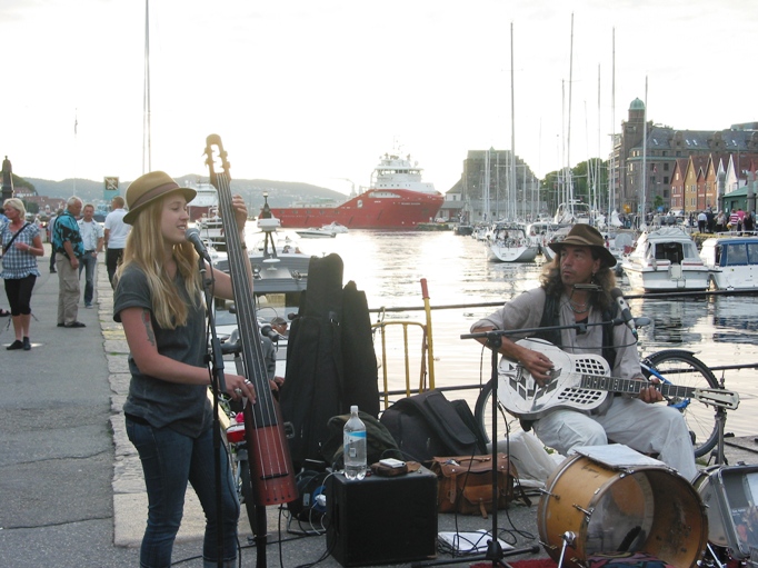 Music players at Bergen harbour. During our stay in Bergen, we enjoyed the great music from Soluna Samay and her father. By the way, Soluna Samay was the winner of the Danish Grand Prix competition in 2012!
