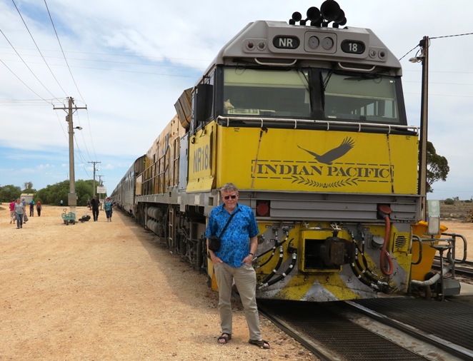Vi fik mulighed for at komme ud af toget en halv times tid på den lille station Cook midt ude i Nullabor-ørkenen.