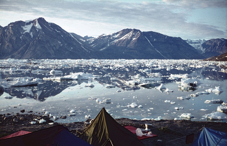 Billedet er fra min ekspedition til fjordene omkring Ammassalik i Østgrønland i sommeren 1973 og viser den store og isfyldte Sermilik-fjord.