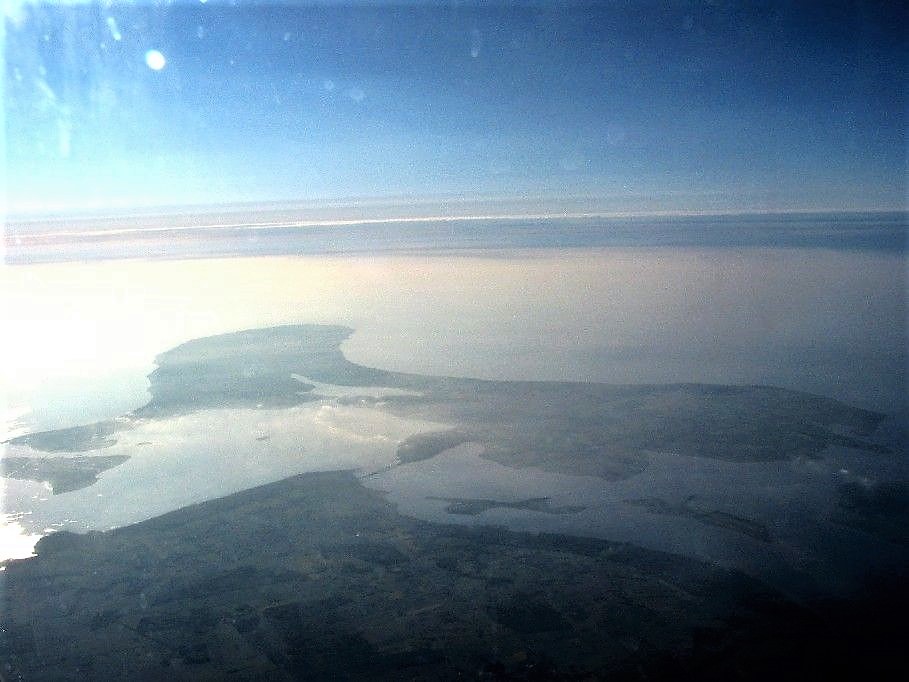 Efter adskillige flyrejser til et sydlige udland lykkedes det mig omsider at få et billede af et skyfrit Møn fra ca. 10 kilometers højde. Det er lettere sagt end gjort at få sådan et billede. Udover godt vejr kræver det, at man har en vinduesplads og kommer til at sidde i den rigtige side af flyet. Men her er Møn i sin fulde udstrækning, fotograferet ved halv syvtiden om morgenen den 27. maj 2003 på vej til Mallorca!