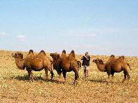 Elise og jeg rejste med en gruppe på 8 personer fra De Berejstes Klub, som fik arrangeret denne fantastiske tur fra Moskva til Kina med den transsibiriske og den transmongolske jernbane. Vi rejste rundt i Mongoliet i cirka. 1 uge. Afstandene var store, og veje var nærmest ikke-eksisterende, hvilket vil sige, at vores 4-hjulstrækkere kørte ad tilfældige hjulspor ud over stepperne og ørkenen. Det ville have været meget svært, hvis vi selv skulle have fundet vej, for der var overhovedet ingen vejskilte, og der kunne gå timer før man mødte en modkørende bil. Det kunne føles langt at køre op til 300 km på en dag i dette terræn, men langt ude i synsfeltet havde man altid udsigt til nomadernes telte og deres dyr, og på den høje himmel over græssletterne og Gobi-ørkenen svævede et imponerende antal ørne og andre meget store rovfugle, som vi også ofte mødte stående ved side af hjulsporet.