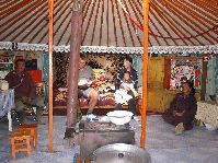 På det meste af turen overnattede vi i nomadetelte. Da det var i slutningen september blev det ofte koldt om natten, så vi måtte flere gange fyre op i den lille brændeovn midten af teltet. En anden stor hjælp til at holde varmen fik vi i den fremragende mongolske vodka, der som så meget andet i dette land er opkaldt efter deres store folkehelt Djengis Khan.