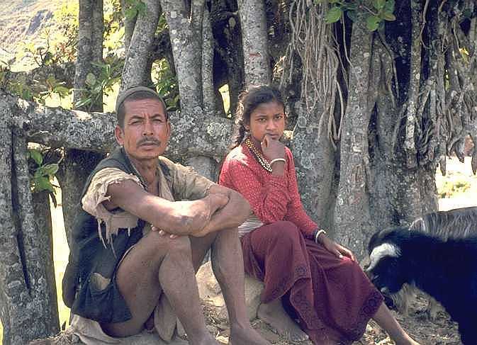 Nepalesisk familie under et af de store, skyggefulde træer, der ofte findes i og omkring