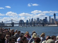 En af mine helt store forventninger var det første møde med Manhattans skyline. Og det svarede præcist til forventningerne, da lyset fra skyskraberne dukkede op i aftenmørket på vej i taxaen over en af de mange broer ind til centrum. Det var en lun septemberaften, og da vi forlod motorvejen og kørte ind i Manhattans gader ved 21-tiden, sad der masser af mennesker på de utallige caféer og restauranter. Vores hotel i Tribeca-kvarteret i Lower Manhattan lå midt i det hele på West Broadway. Det var på ingen måde et luksushotel, men vi havde valgt at prioritere oplevelser frem for komfort, og hotellet (Cosmopolitan Hotel), som lå i en ældgammel bygning, formentlig fra omkring 1900-tallet, var i øvrigt udmærket og med en vis lokal kolorit. Trappen fra værelset ned til receptionen lugtede i hvert fald stærkt af den gode kaffe fra Starbuck-caféen lige på den anden side af skillevæggen!