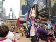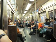 Vi kom rundt i byen med metroen. New Yorks metro er et af de steder, hvor man kommer tættest på den lokale befolkning og mærker byens puls. Jeg har altid holdt meget af den hektiske stemning dernede. Subwayen kører hele døgnet, og den går lige i blodet og bombarderer én med en overflod af indtryk. Fortravlede mennesker fra alle samfundslag i en labyrint af gange i alle retninger og på mange niveauer, små orkestre, der pludselig dukker op bag næste hjørne, forventningens glæde ved at stige op til jordoverfladen et helt nyt sted, hvor man aldrig har været før, you name it. Tag trappen op til Times Square om aftenen og bliv beruset af det blændende lyshav og det bølgende menneskehav. Eller kør over eller under East River og nyd New Yorks skyline fra Brooklyn-siden. Eller stå af på Grand Central Station og oplev byens smukkeste offentlige rum, hvor lyset fra de enorme vinduer skinner ned på marmorgulvet og de travle togpassagerer.