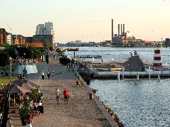 4: From Islands Brygge in central Copenhagen. This quai has been been renewed recently with very succesful results. One of the popular new creations is a public swimming-pool in the heart of the city (right).
