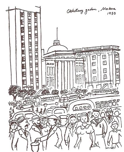 Det er kirgisere, der styrer vores flyvemaskine. Også mange af passagererne er kirgisere, og det forekommer mig at være kønne mennesker. Folk kommer med deres tasker og indkøbsnet og finder sig pladser, forældre med småbørn, gamle bedstemødre, det er som i rutebilen hjemme i Fredensborg. Der er børn, som leger og gnaver æbler, og voksne, som læser avis og ikke lader sig forstyrre i læsningen, fordi maskinen starter til Asien. Man er så vant til at rejse med flyvemaskine i dette land.”