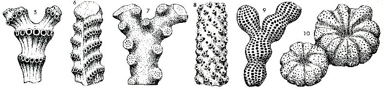 Bryozoer (mosdyr) fra kridttiden. Kilde: Wienberg-Rasmussen: Danmarks geologi